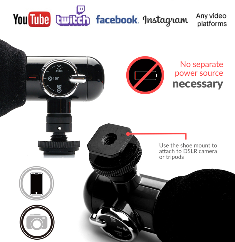 Simple Videography For Everyone - 3 Different Recording Modes (ASMR / DIRECTIONAL / OMNI), No Battery Needed, 360 Degree Rotation Function;